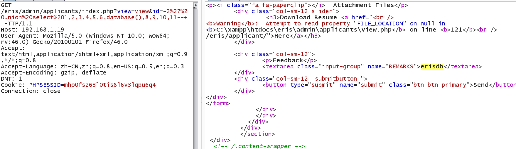Vulnerability File: /eris/admin/applicants/index.php?view=view&id=