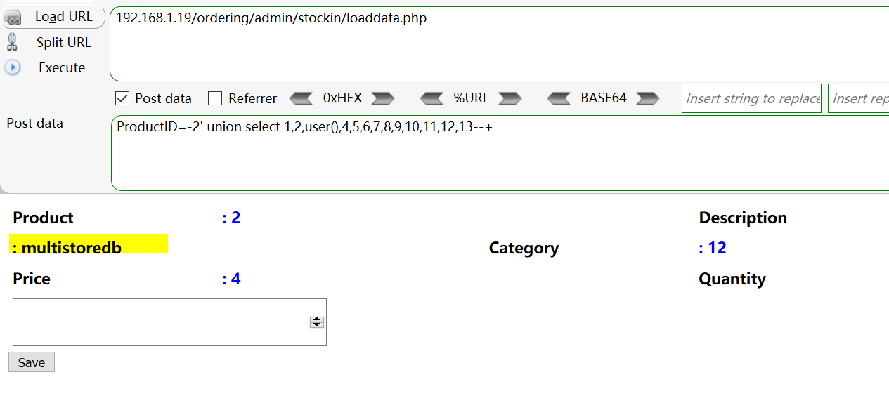 Vulnerability location: /ordering/admin/stockin/loaddata.php&ProductID //ProductID is Injection point