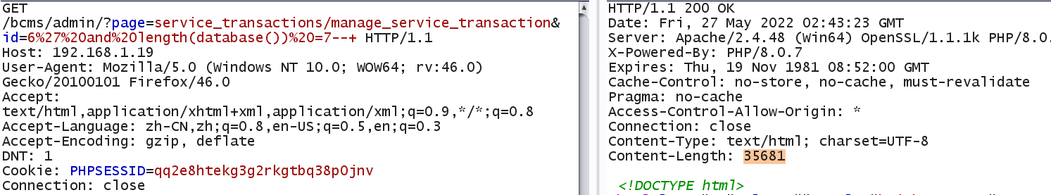 When length (database ()) = 7, Content-Length: 35681
