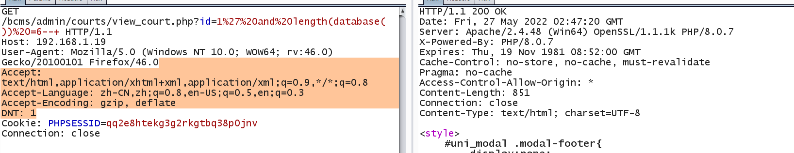 Connection: closeWhen length (database ()) = 6, Content-Length: 851