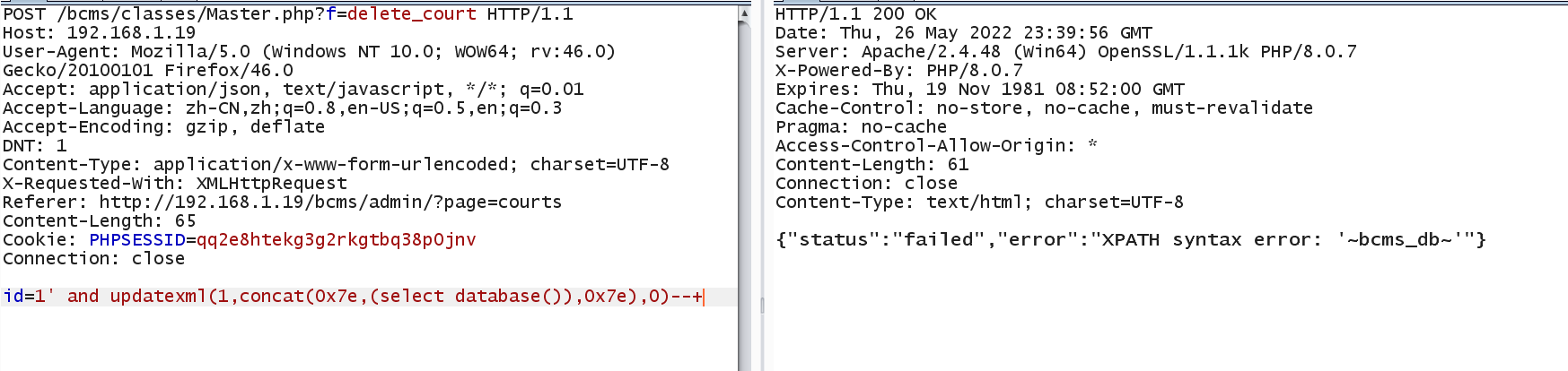 Vulnerability location: /bcms/classes/Master.php?f=delete_court, id