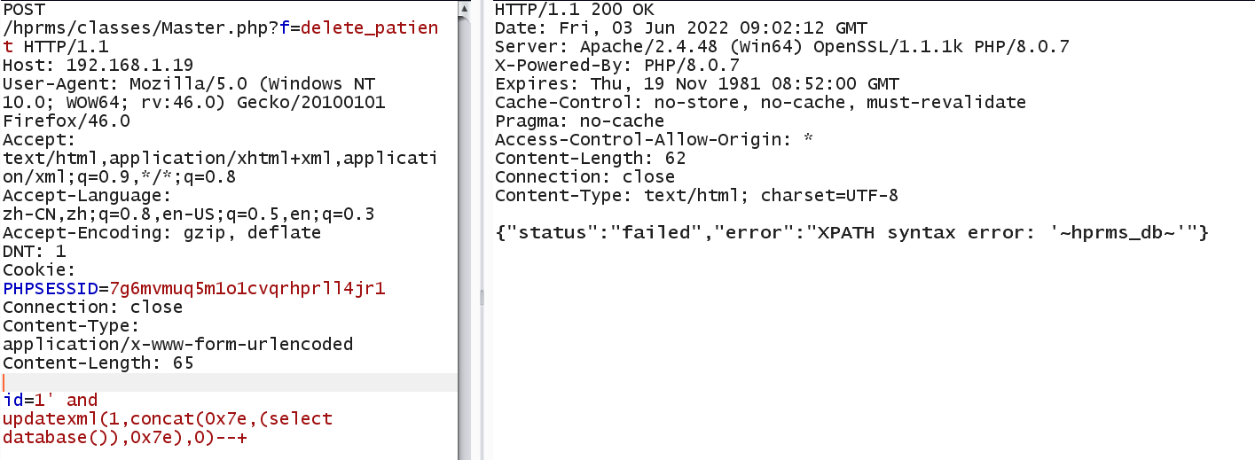 Vulnerability location: /hprms/classes/Master.php?f=delete_patient, id