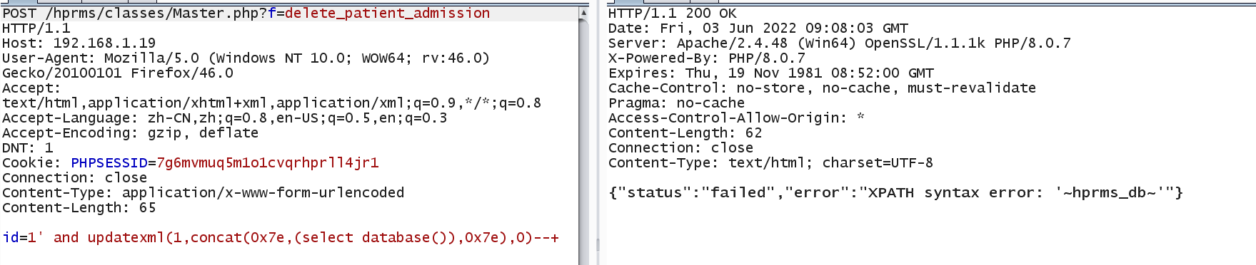 Vulnerability location: /hprms/classes/Master.php?f=delete_patient_admission, id