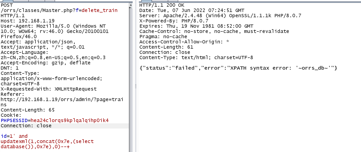 Vulnerability location: /orrs/classes/Master.php?f=delete_train, id=