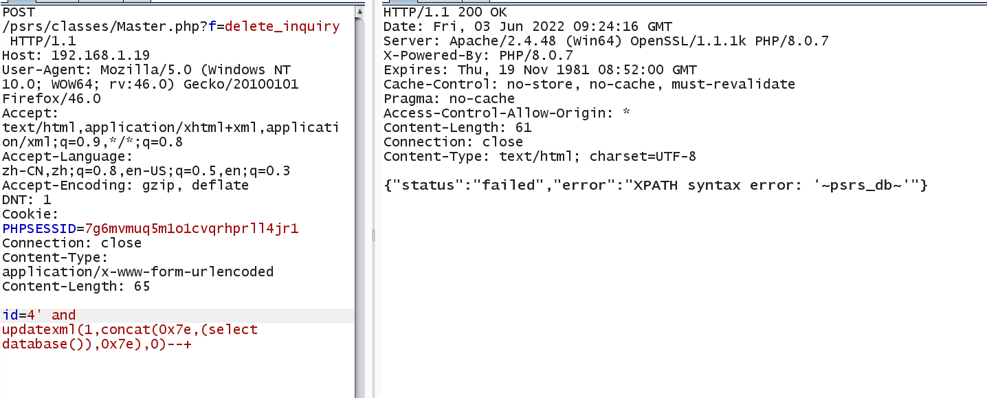 Vulnerability location: /psrs/classes/Master.php?f=delete_inquiry, id