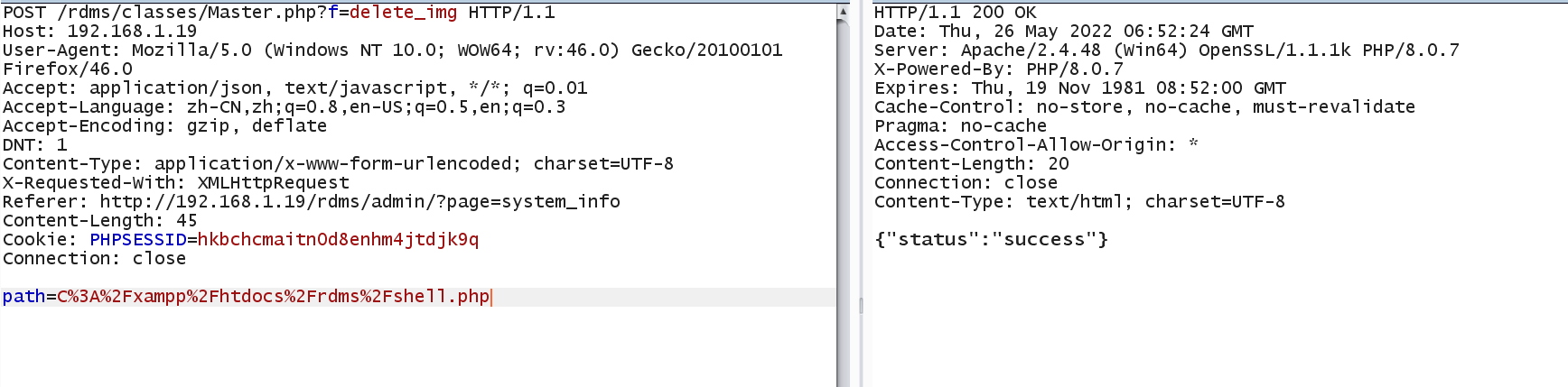 path=C%3A%2Fxampp%2Fhtdocs%2Frdms%2Fshell.phpThe file path needs to be encoded by url