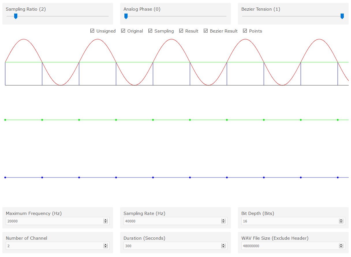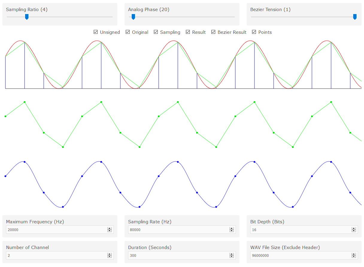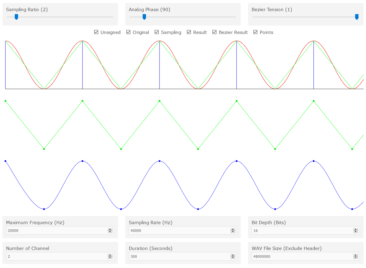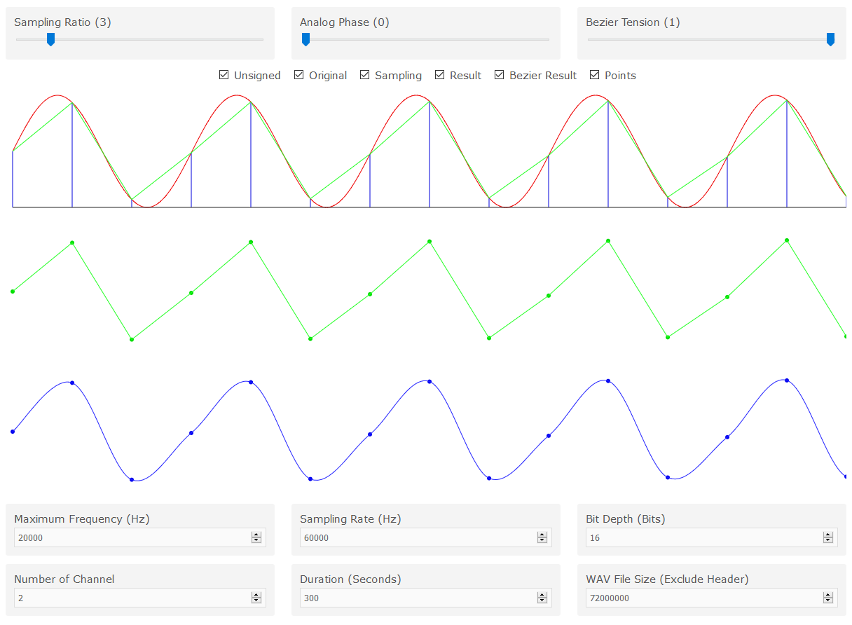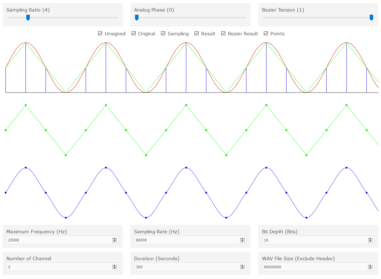 Extract file tersebut kemudian buka file index.html menggunakan browser. Silakan ubah Sampling Ratio dan Analog Phase. Perhatikan gambar yang ditampilkan.