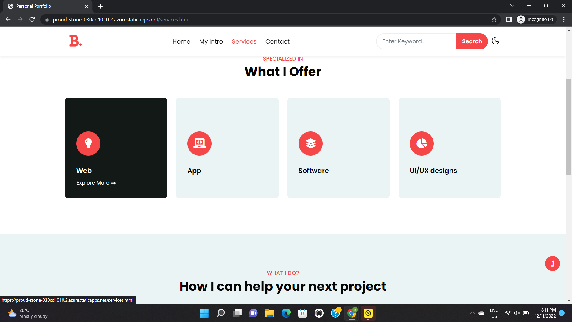 #Azure project link https://proud-stone-030cd1010.2.azurestaticapps.net