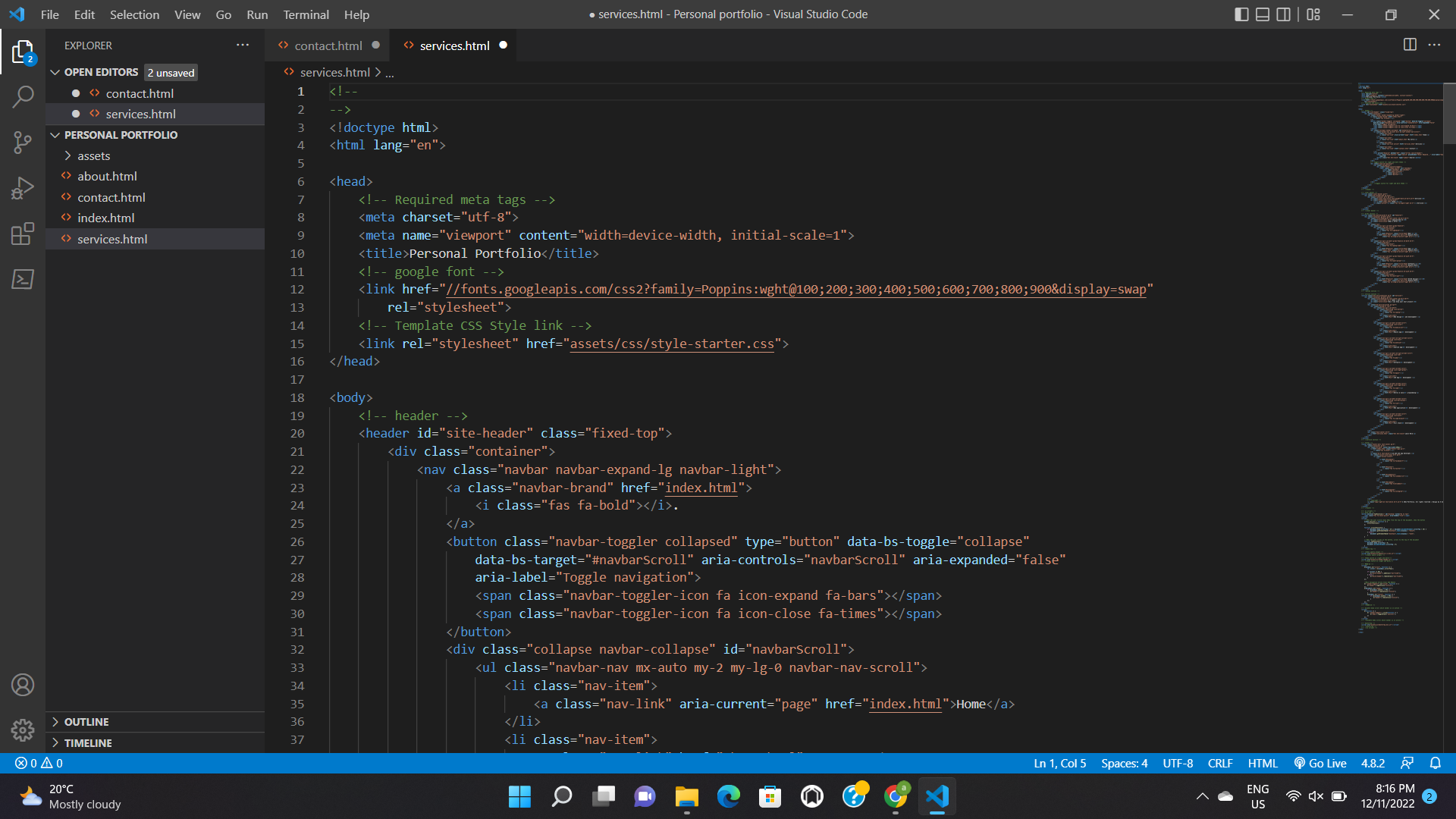 I create portfolio website for final project