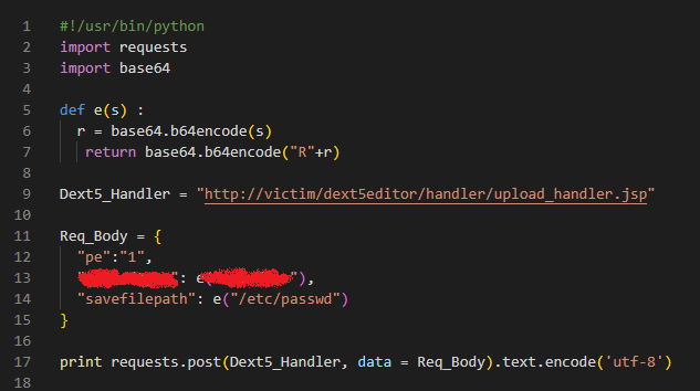 - DEXT5 Editor 3.5.1402961 and earlier version allows an attacker to download arbitrary files from the target server via specially crafted HTTP requests. When upload_handler.jsp is requested, it can be downloaded by manipulating some parameters such as "savefilepath".