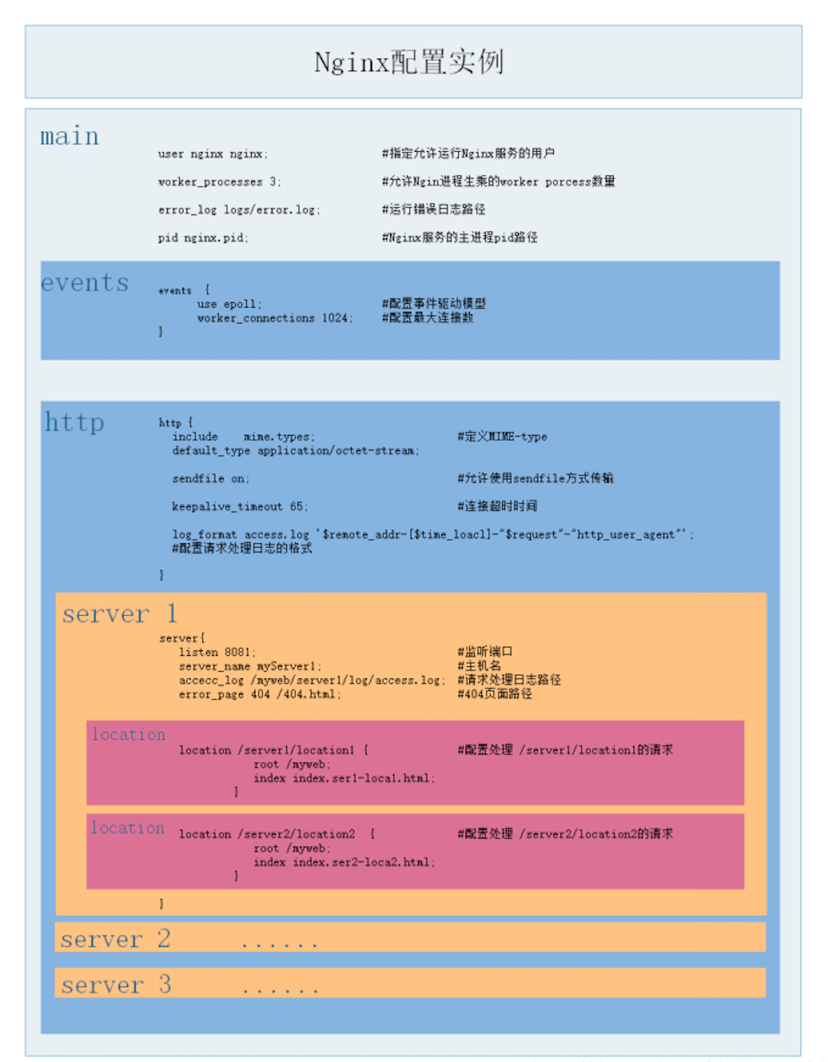 #server表示虚拟主机可以理解为一个站点,可以配置多个server节点搭建多个站点