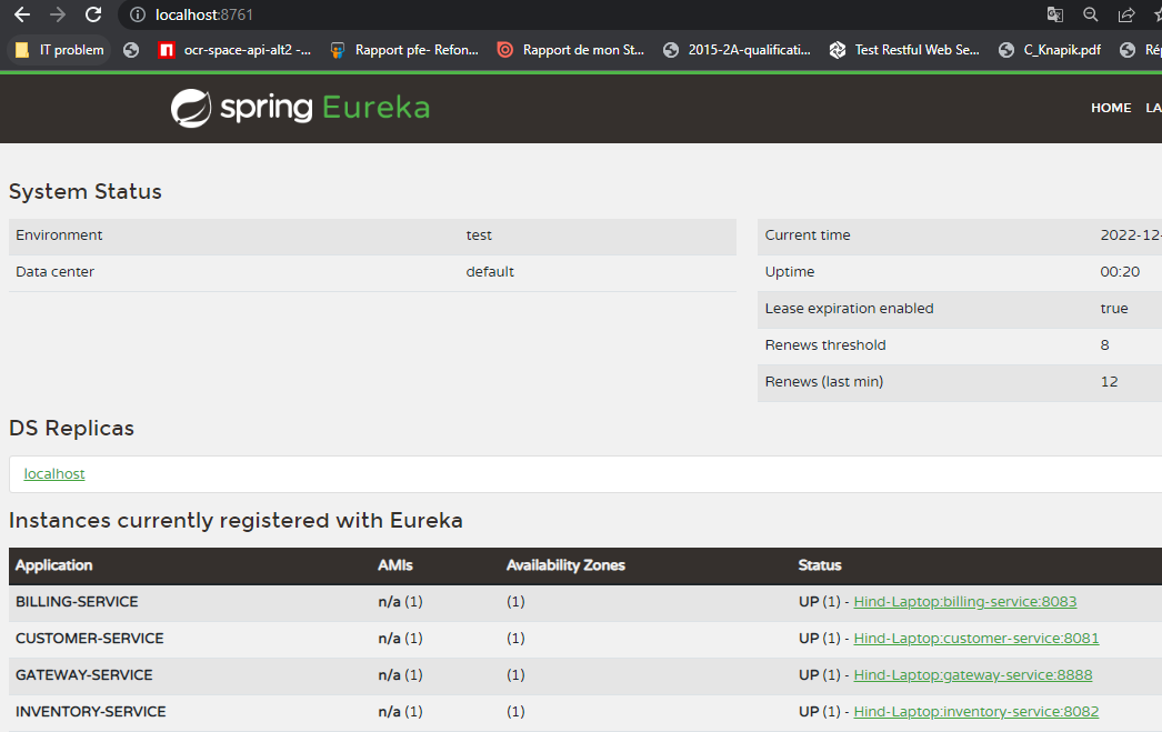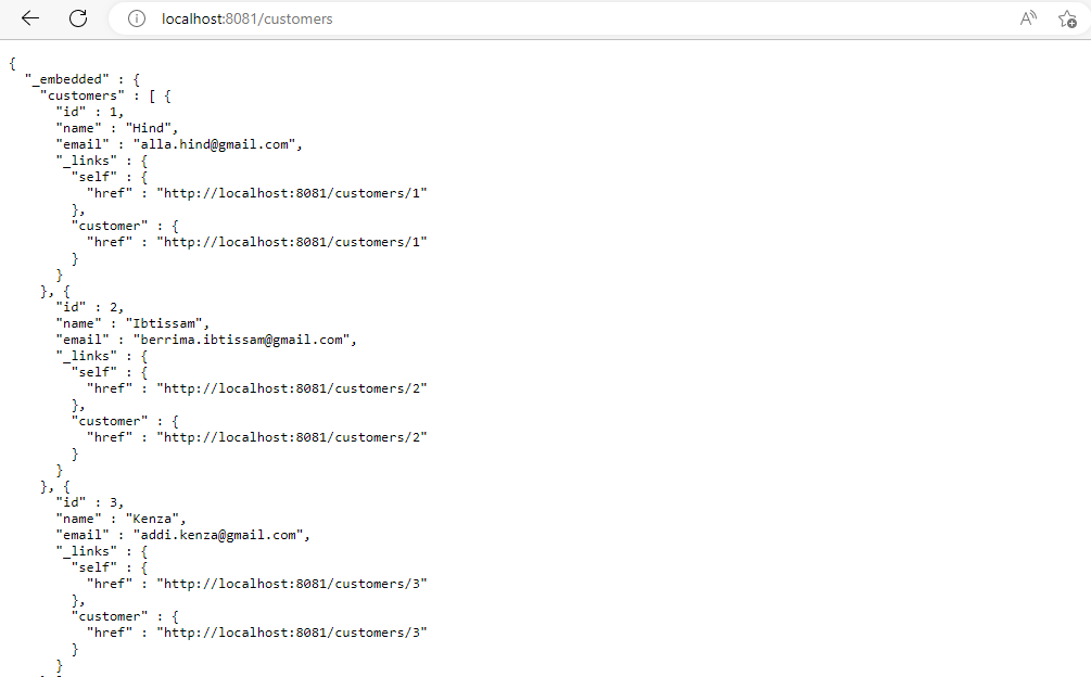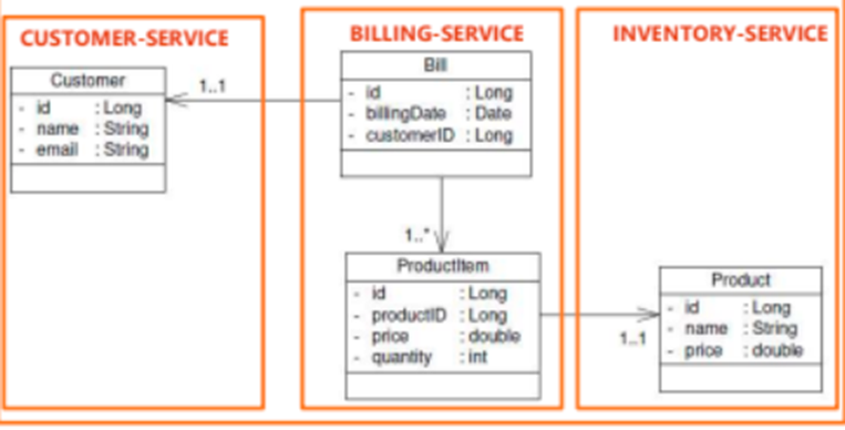---------------- Spring Cloud Microservices ---------------- Table de matière I. Mise en œuvre des architecture micro-services avec Spring Cloud I. Mise en œuvre des architecture micro-services avec Spring Cloud Architecture de l’application : Conception de l’application : Capture d’écran de l’application : 1.1 Customer Service - get All Customers 1.2 Customer Service - get Customer by ID 2.1 Inventory Service - get All Products 2.2 Inventory Service - get Product by ID 3.1 Registry Eureka Service