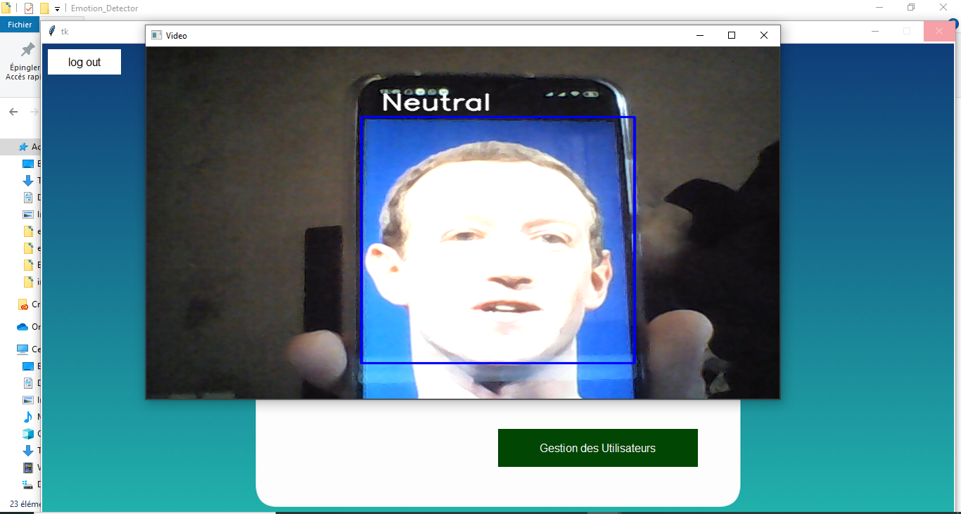 - si l'utilisateur est déjà ajouté dans la base de données le système permet de faire la reconnaissance faciale ainsi que la reconnaissance des émotions de la personne.