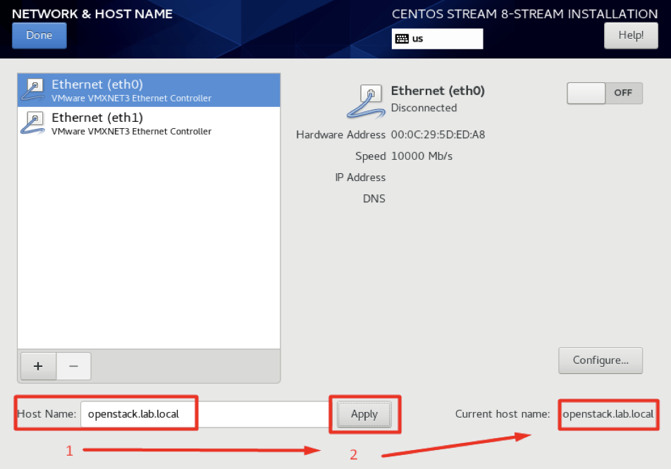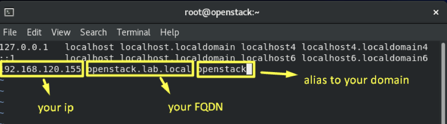 In this project we used CentOS Stream 8-streamn, a single VM of MINIMUM 12 GB RAM, 2 CPUs and 2 NICs FQDN of machine openstack.lab.local, so we should edit /etc/hosts file.