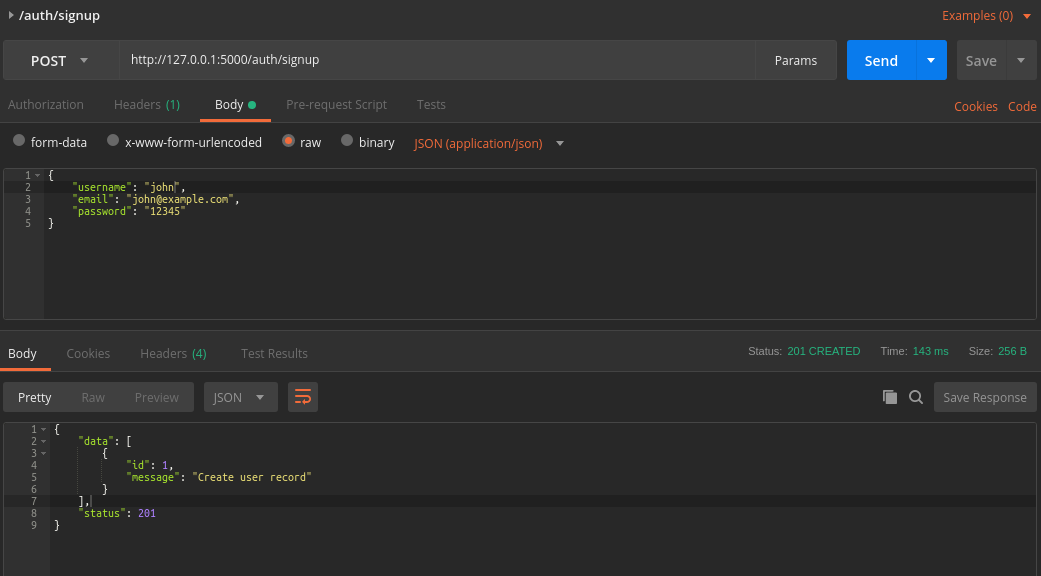 flask runon the terminal./auth/signupusing the following header:What are the relevant pivotal tracker stories?