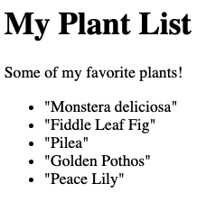 A problem with our content is that it doesn't explicitly state anywhere that it's a list. In the example, we see a list of plants. But a browser doesn't know what a "list" is.