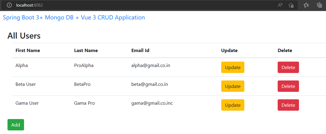 We will build a full-stack web application that is a basic User Management Application with CRUD features: