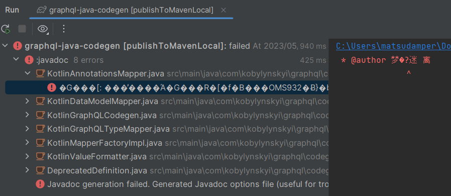 I did puglishToMavenLocal and got an error in the javadoc section.