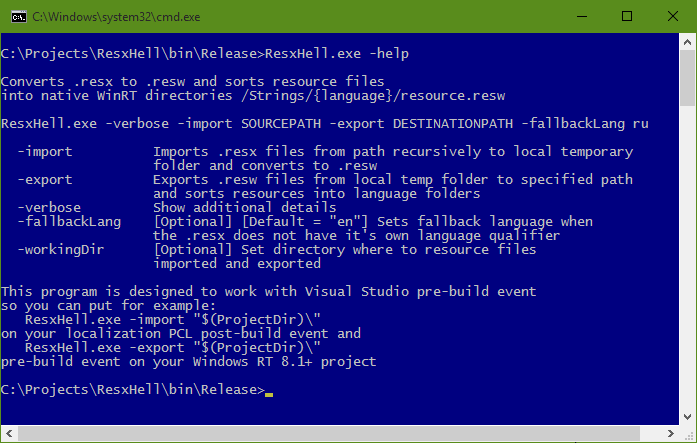 - Make a "ResxHell" folder in your solution's root directory and place a ResxHell.exe there
