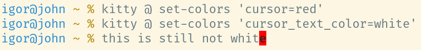igor@john ~ % kitty @ set-colors 'cursor_text_color=foo'