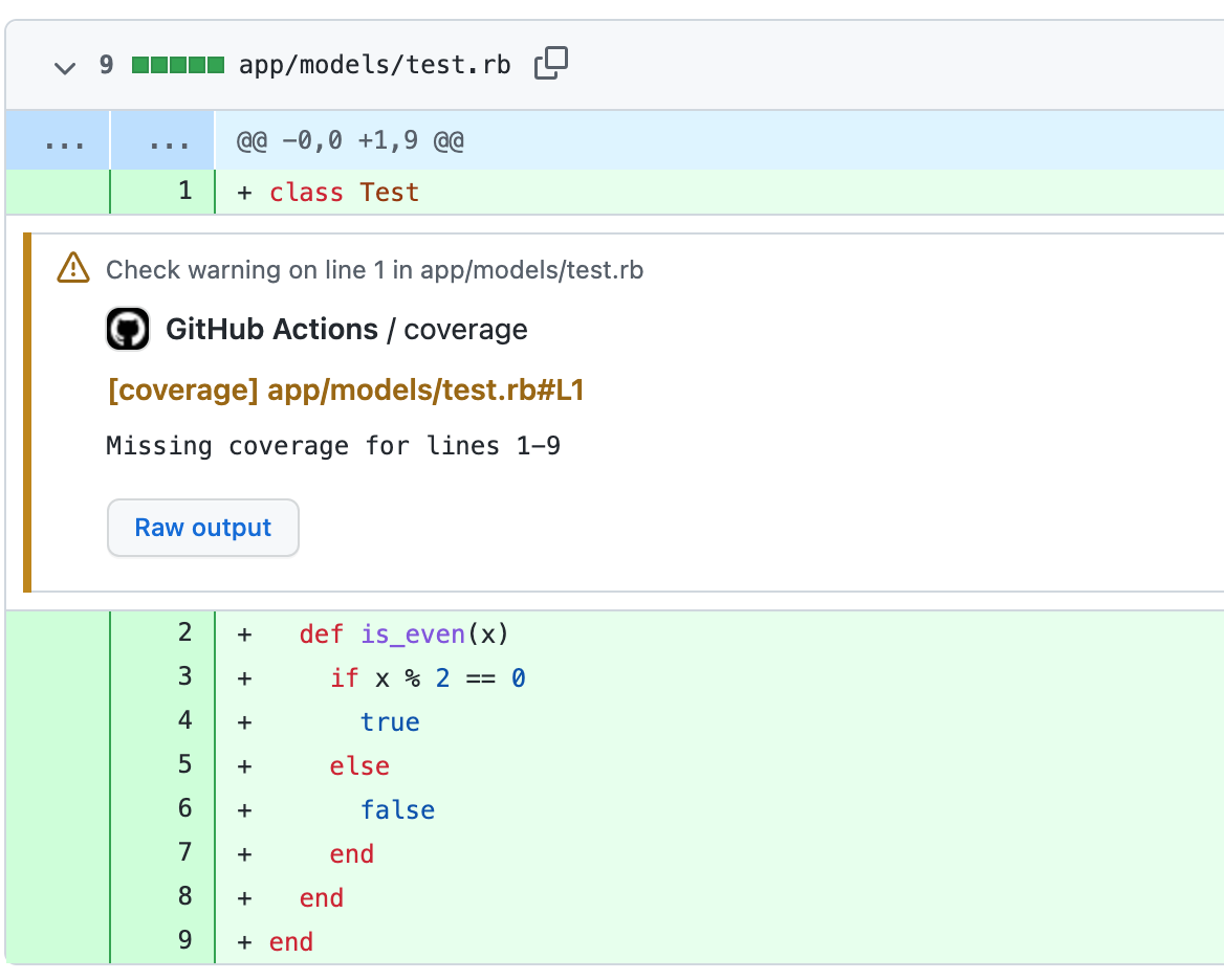 To report uncovered lines with reviewdog, add following lines to .reviewdog.yml: