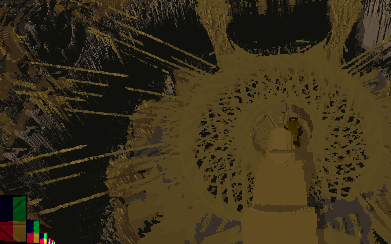 Notice the debug rendering of the GPU collision mipmap at the bottom left: