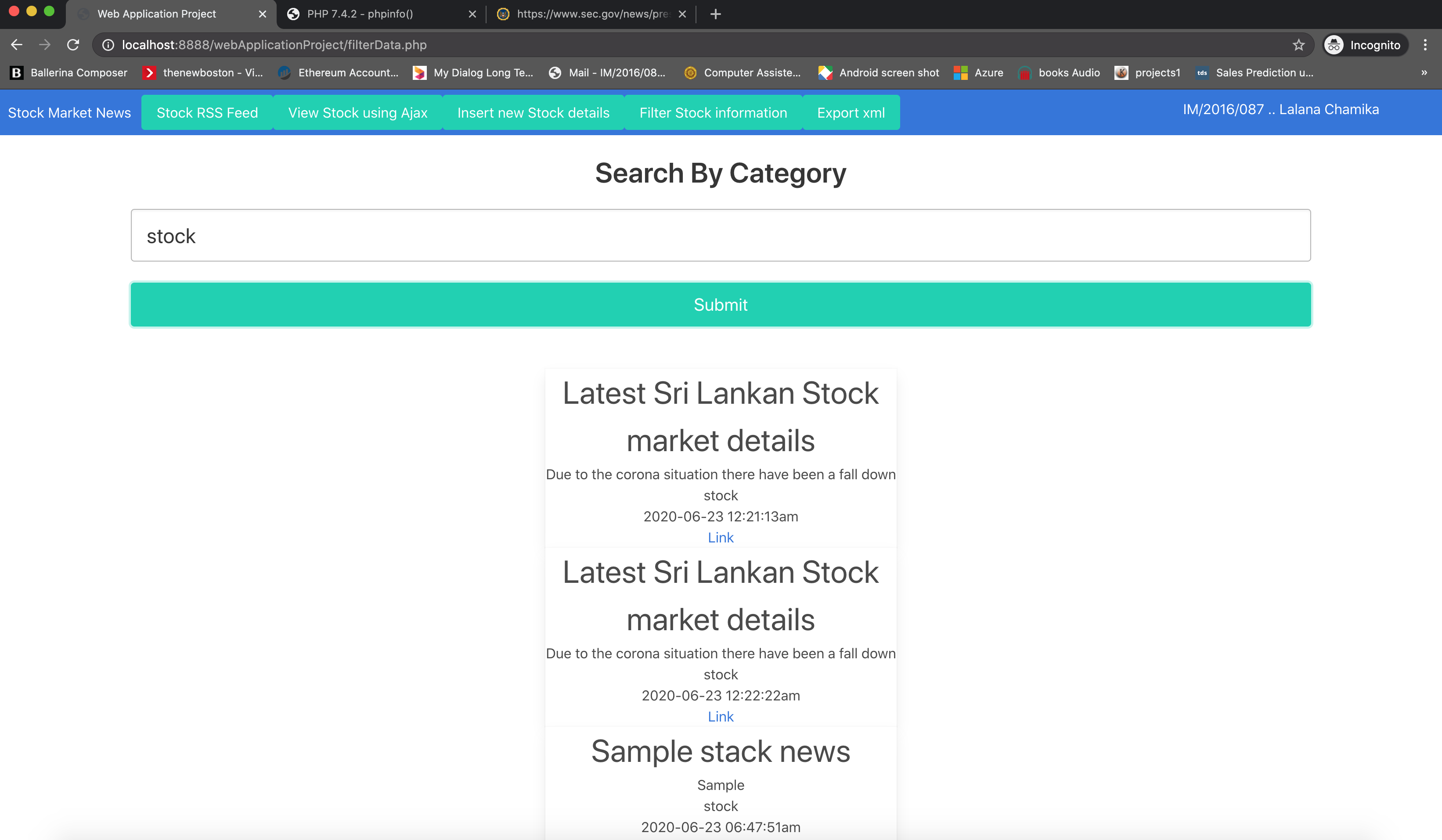 📈📊Web applications that process stock market news XML file(which is obtained from an open source RSS feed "https://www.sec.gov/news/pressreleases.rss" ), store extracted information in MongoDB, add new entries, generate new xml datasets, different types of reports based on filters