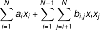 where ai ∈ ℝ, and bi,j ∈ ℝ are given. There is always one minimum, but there can be more. For example, f(x) = 3x3 + x1x2 − 2x1x3 − 2x2x3 is minimized at {x1, x2, x3} = {0, 0, 0}, {0, 1, 0}, {1, 0, 0}, and {1, 1, 1}: