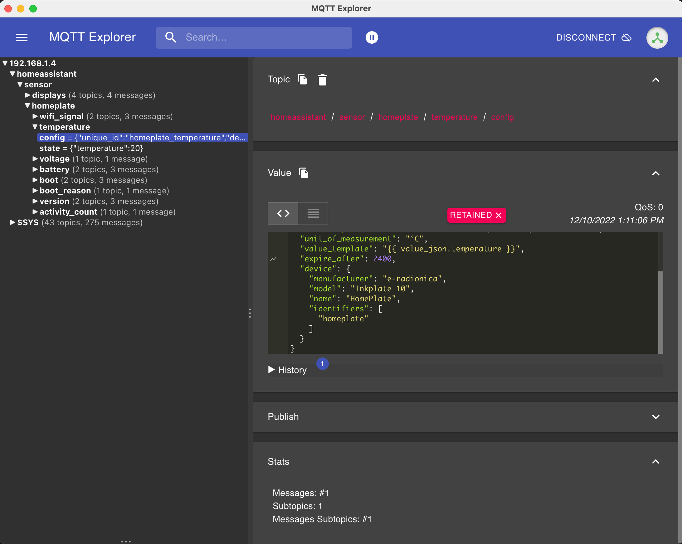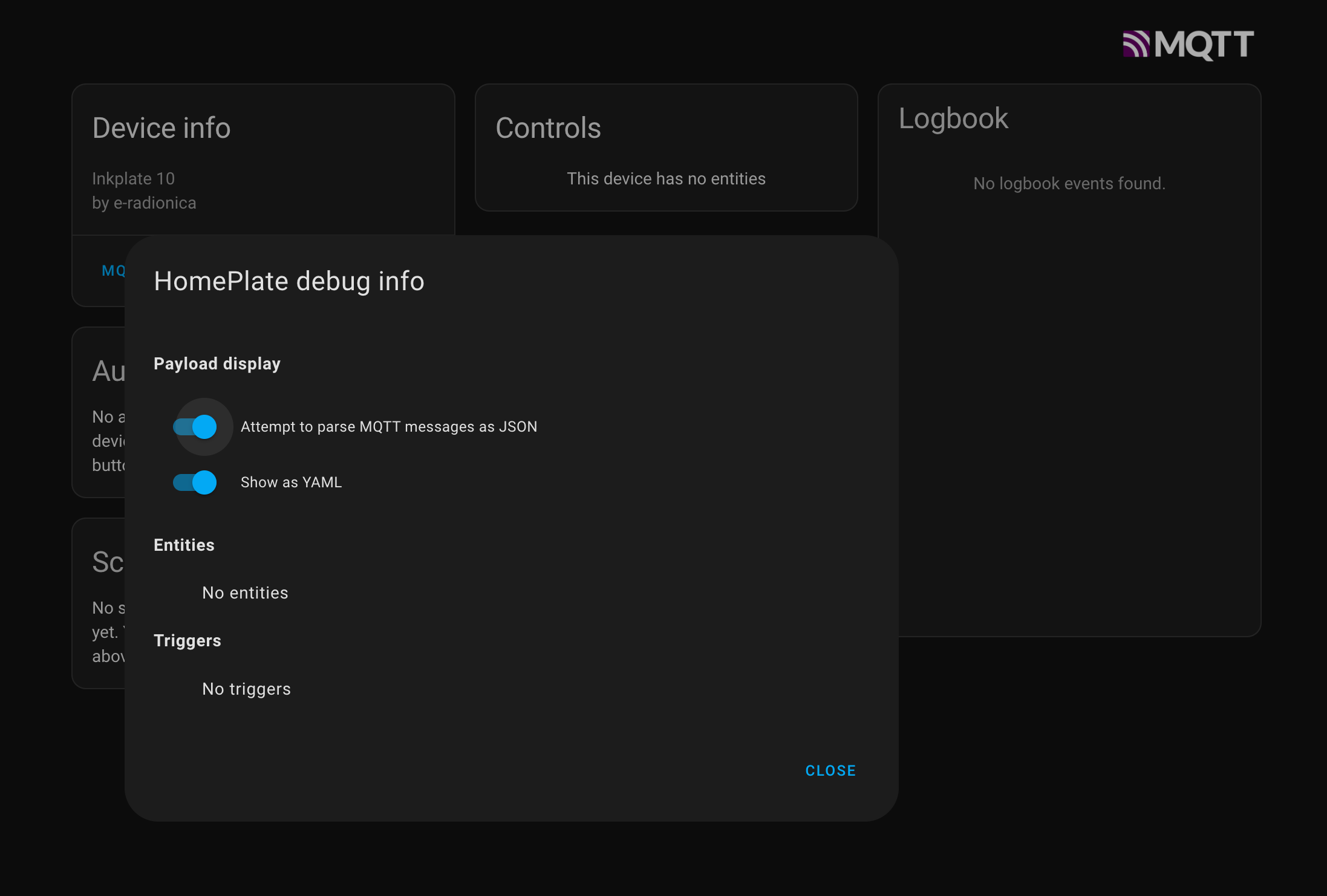 Quick hack for the homeplate to show up in HA Device Registry via MQTT Discovery